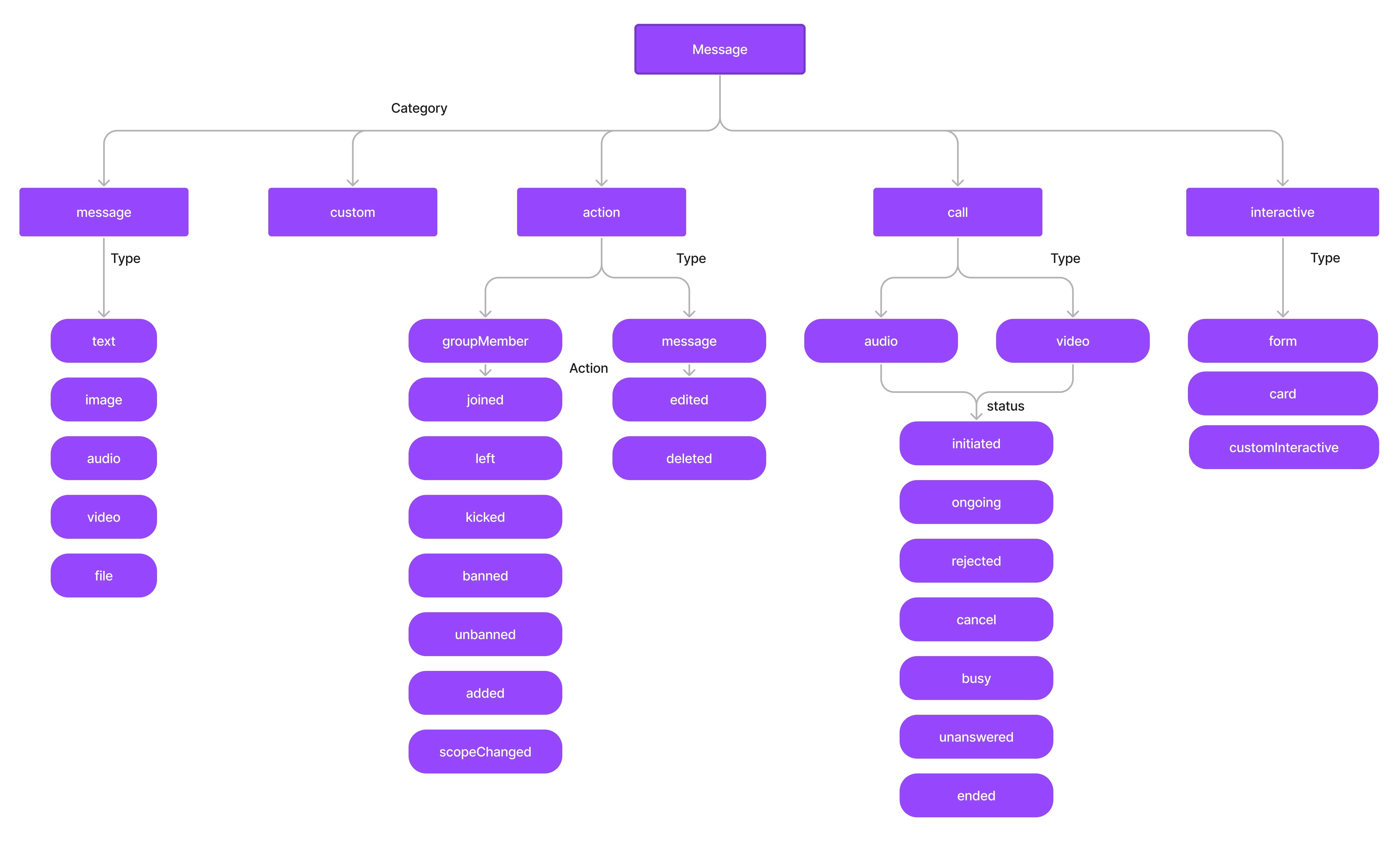 Action messages hold another property called action which actually determine the action that has been performed For the type groupMember the action can be either one of the below: