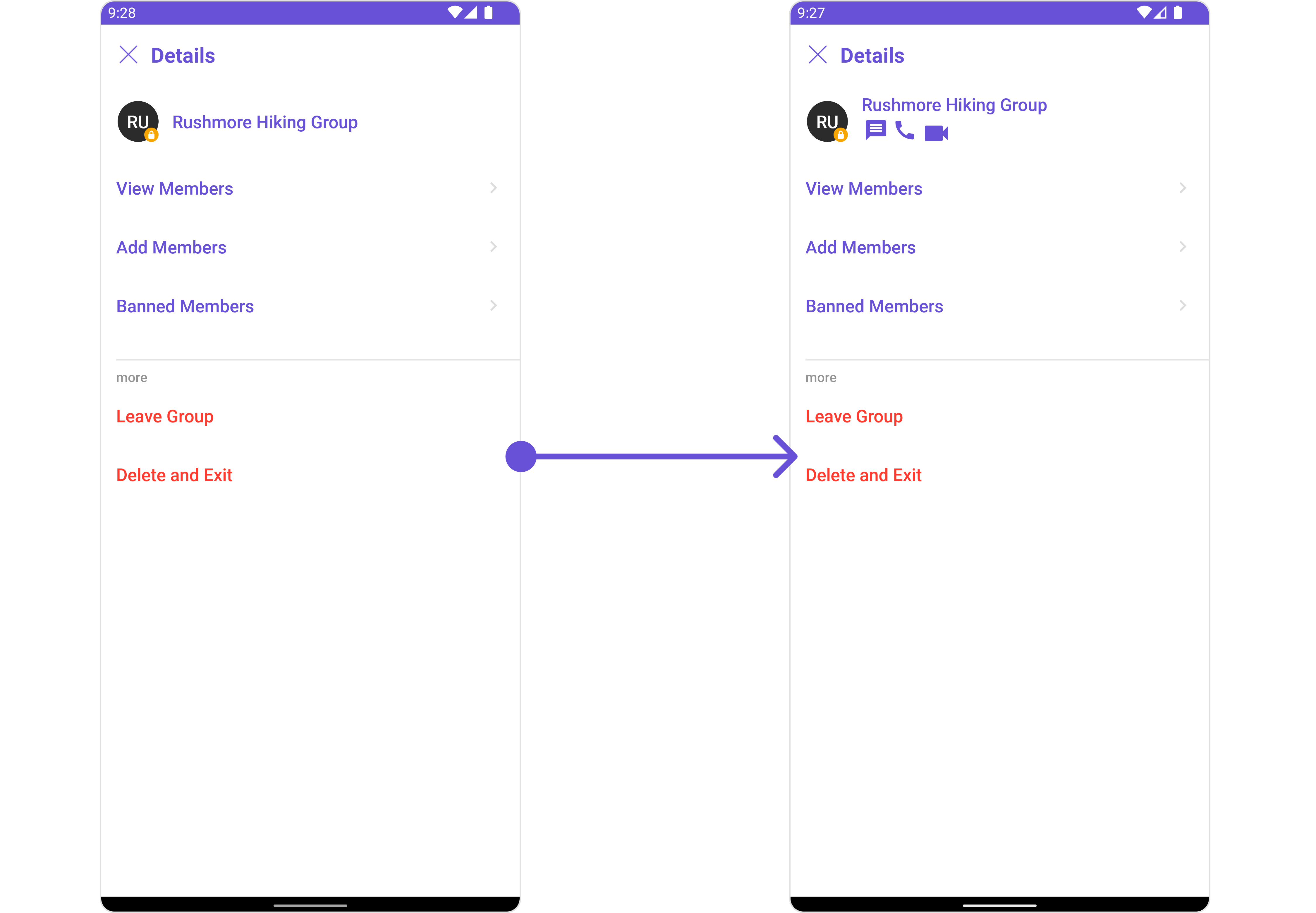 CometChatDetails, as a component, offers flexible integration options, allowing it to be launched directly via button clicks or any user-triggered action. Additionally, it seamlessly integrates into tab view controllers. With banned members, users gain access to a wide range of parameters and methods for effortless customization of its user interface. The following code snippet exemplifies how you can seamlessly integrate the CometChatDetails component into your application. Since CometChatDetails is a custom view, It can be launched by adding the following code snippet into the XML layout file.