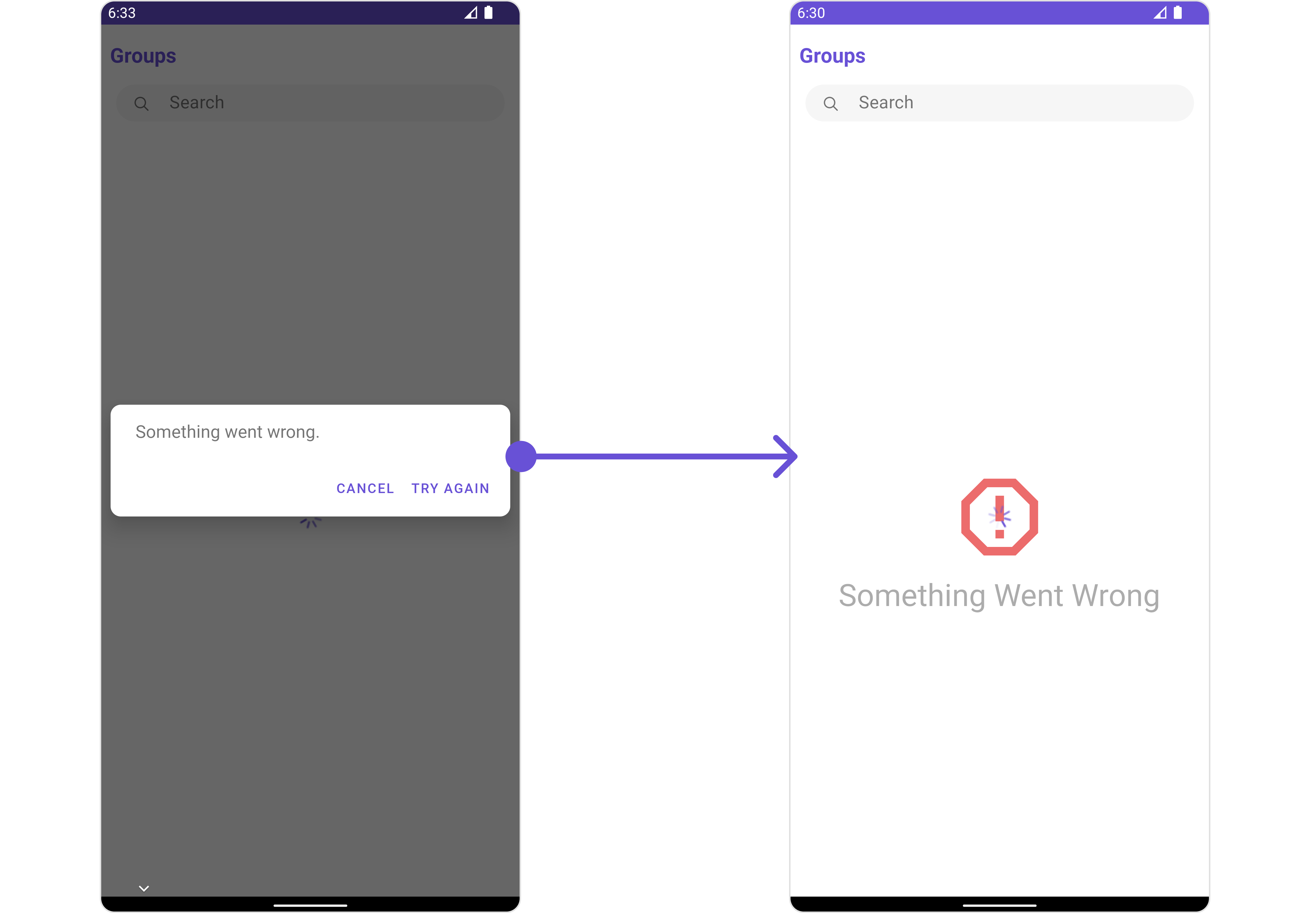 | ErrorState Text | Used to set a custom text response when some error occurs on fetching the list of groups | .errorStateText("Your Text") |