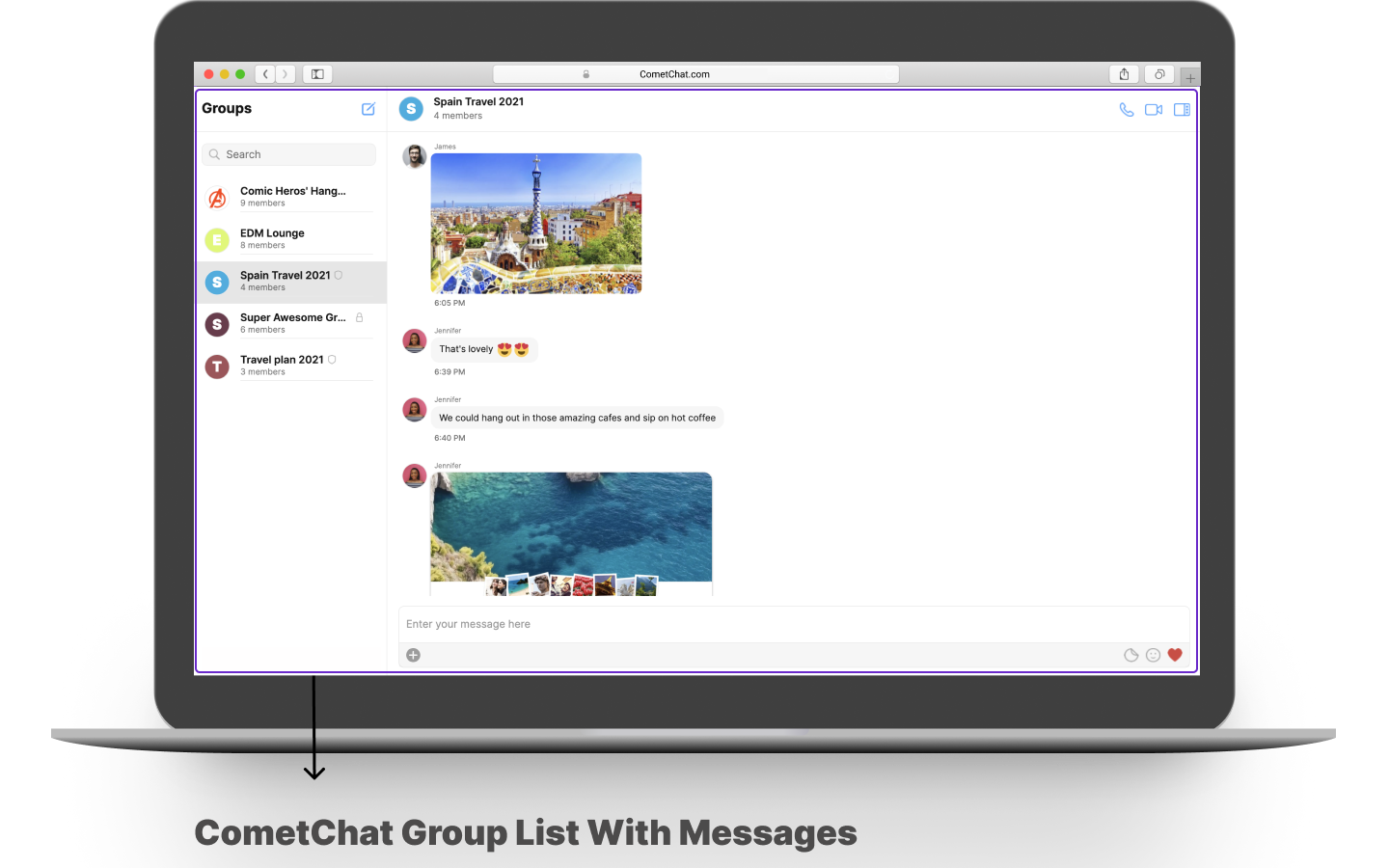 The CometChatGroupListWithMessages is a component with a list of groups. The component has all the necessary listeners and methods required to display the group’s list and shows the set of the messages/chats of the selected group
