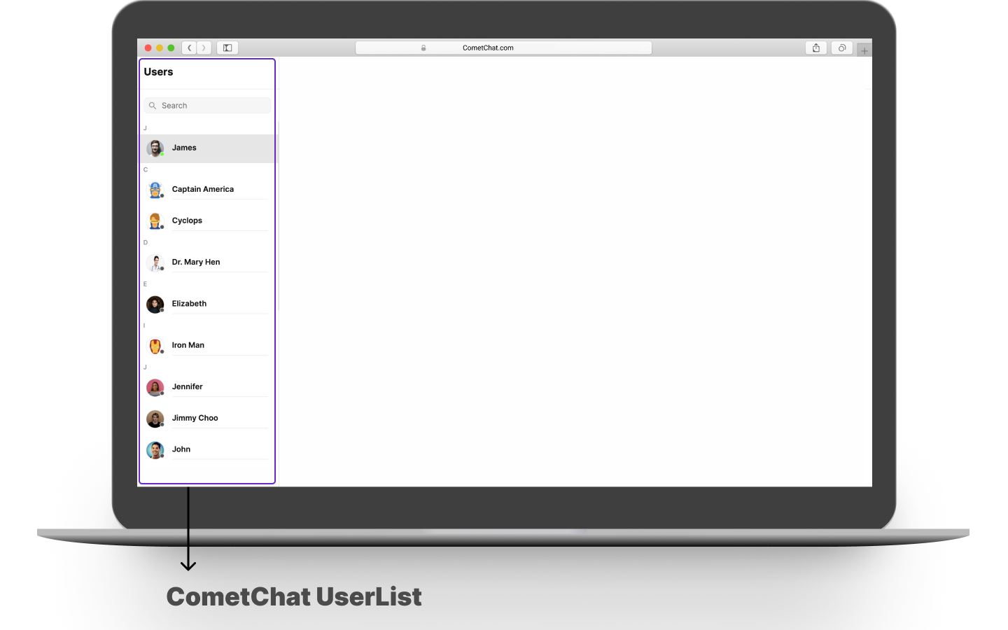 The CometChatUserList is a component that displays the list of users available to chat. You can use this component within your app if you wish to display the list of users.