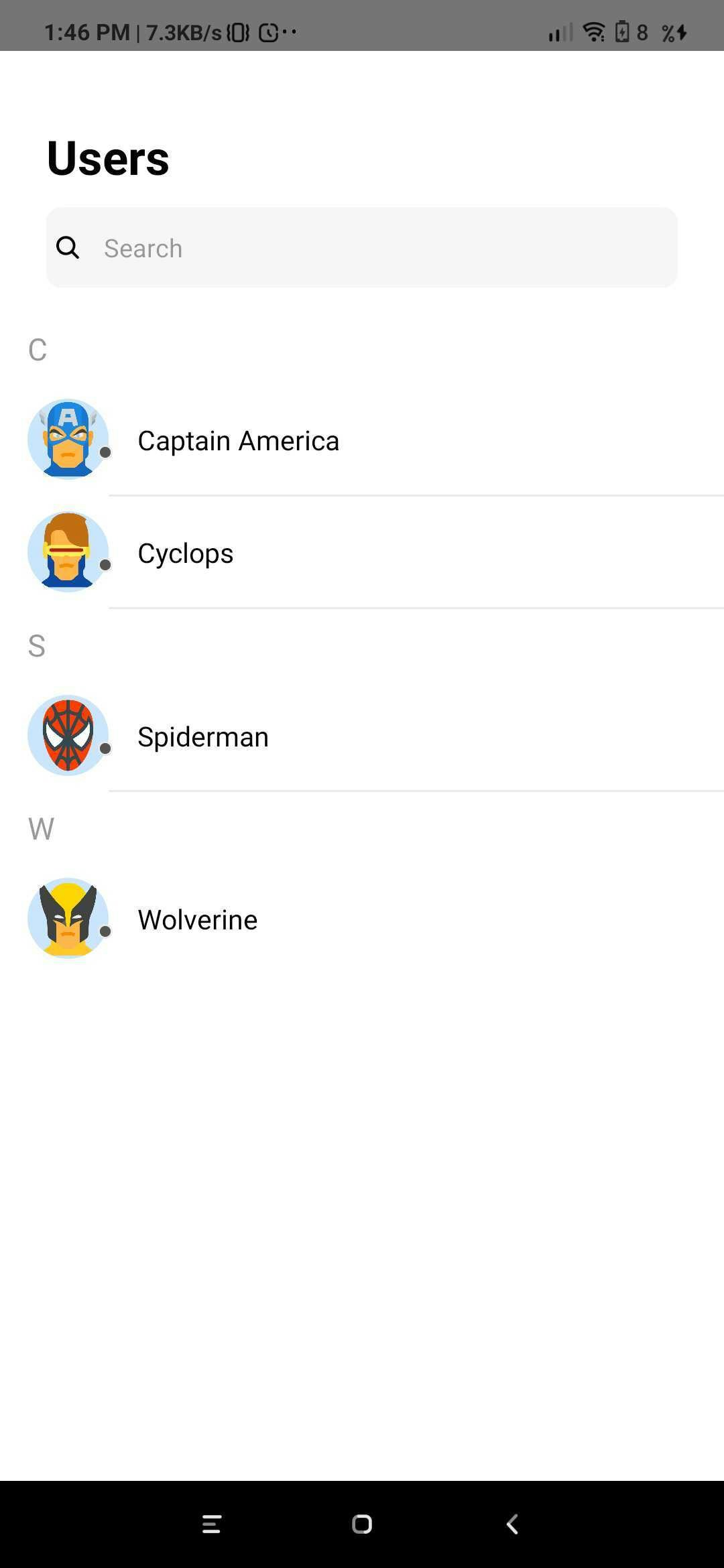 The CometChatUserList is a component that displays the list of users available to chat. You can use this component within your app if you wish to display the list of users.