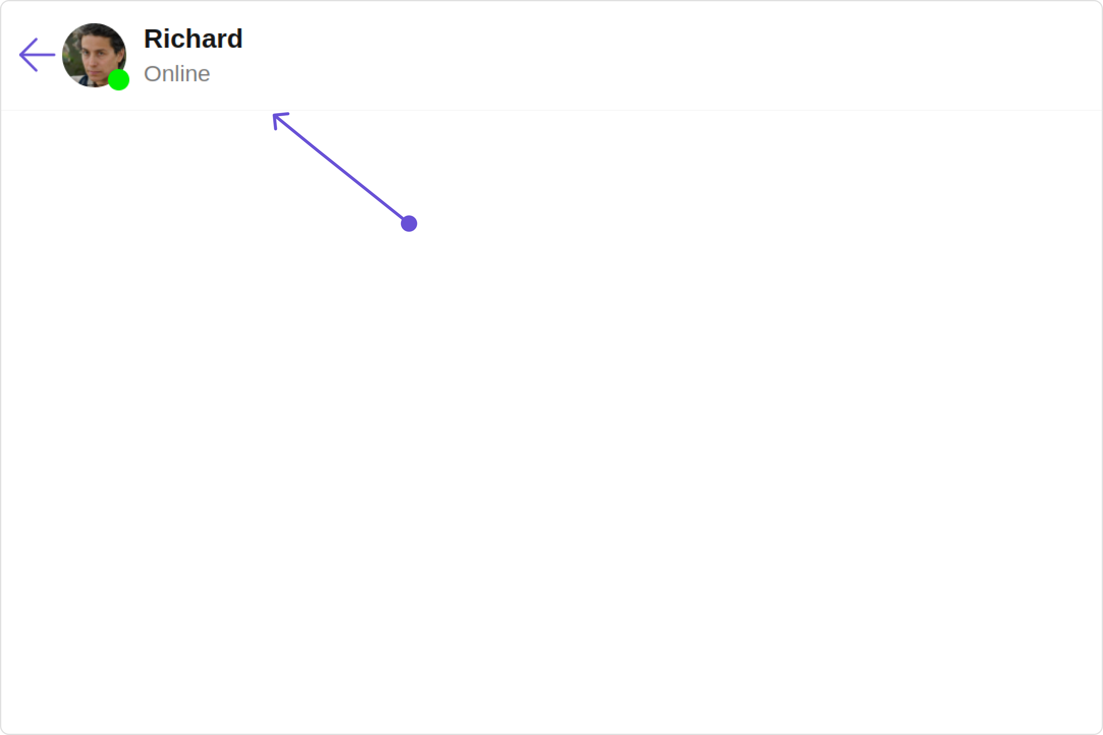 MessageHeader is a Component that showcases the User or Group details in the toolbar. Furthermore, it also presents a typing indicator and a back navigation button for ease of use.
