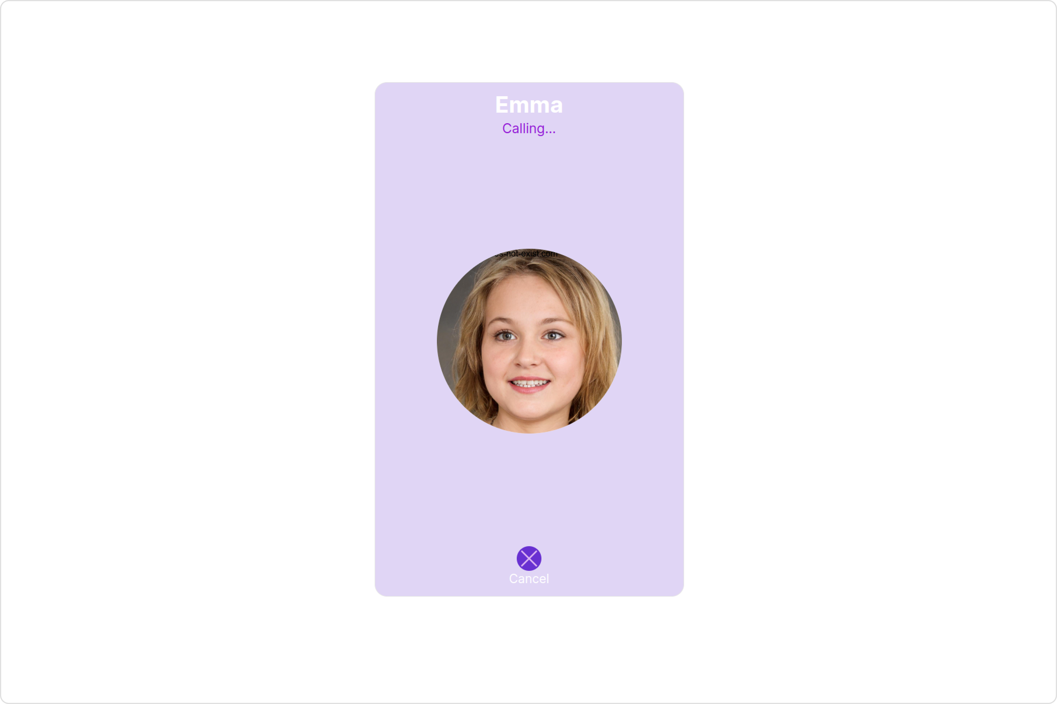 The outgoing call component is a visual representation of a user-initiated call, whether it’s a voice or video call. It serves as an interface for managing outgoing calls, providing users with essential options to control the call experience. This component typically includes information about the call recipient, call controls for canceling the call, and feedback on the call status, such as indicating when the call is in progress.